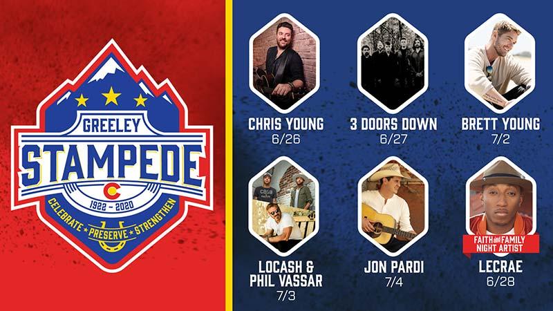 .@GreeleyStampede complete lineup announced! @3DoorsDown to join @ChrisYoungMusic @brettYoungMusic @jonPardi @LOCASHmusic @PhilVassar @lecrae & more! #GreeleyStampede talent is booked & produced by @RomeoEntGroup