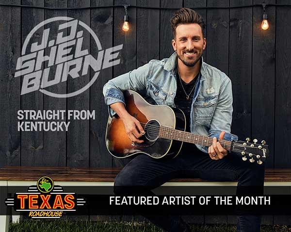 NASHVILLE, Tenn. - Country music singer/songwriter J.D. Shelburne has been named by Texas Roadhouse as May’s 'Artist of the Month' nationwide. His latest single, “Straight From Kentucky,” written by J.D. Shelburne, Phil O'Donnell and Tyler Booth will be featured in all 587 locations, seen by over 20,000 guests at each store every month. Former Artists of the Month include John Pardi, Kelsea Ballerini, Granger Smith, Kenny Chesney, Kacey Musgraves, Justin Moore, George Strait and more.