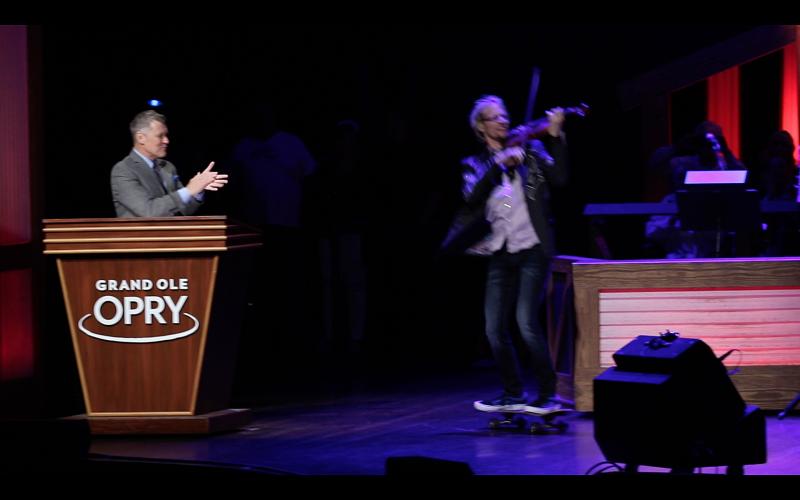 “Kyle Dillingham has made Opry history. His debut tonight, and the first ever to enter and exit on a skateboard. It is my thought that the fiddler blew the roof off the Grand Ole Opry house tonight!”