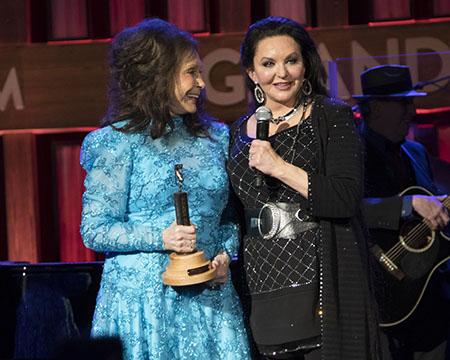 NASHVILLE, Tenn. (January 21, 2017) – Grammy®-winning songstress Crystal Gayle was inducted into the Grand Ole Opry® this evening at the Ryman Auditorium by her sister and Opry legend Loretta Lynn. Gayle made her Opry debut 50 years ago on the Ryman stage, singing the country classic “Ribbon of Darkness” at age 16. She had been publicly invited to join the Opry by Opry member Carrie Underwood in November.