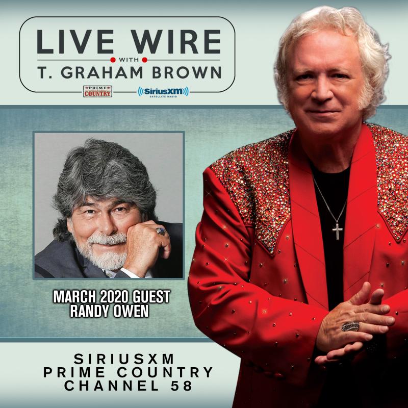 Nashville, Tenn. – Country hit-maker T. Graham Brown's LIVE WIRE on SiriusXM's Prime Country, Channel 58 will debut a new episode for March, starting Wednesday, March 4th at 10/9c, featuring an interview with country music hitmaker Randy Owen. LIVE WIRE is a one hour show that showcases live cuts & interviews with some of T. Graham Brown's closest friends and heroes, sharing fun stories about life on the road.
