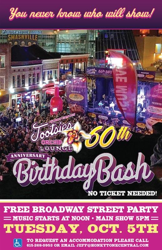 "Tootsie's Birthday Bash has become one of the most highly-anticipated annual events on lower Broadway. Each year it gets bigger and better," said Tootsie's owner Steve Smith. "Many artists started at Tootsie's, and having them come back year after year is a great honor to the legacy and memory of Tootsie Bess! Everyone should come out and experience that magic on our birthday!"